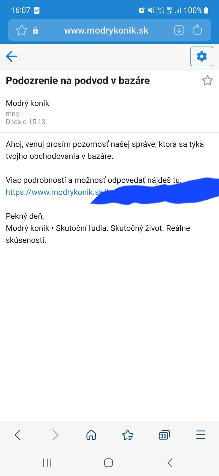Ahoj, toto upozornění je od Modrého koníka🙂