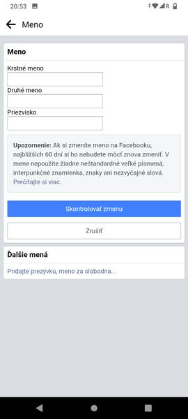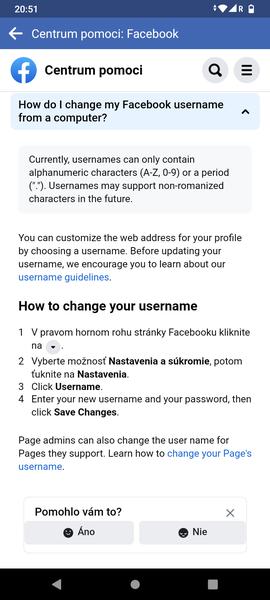 Pomoc s Facebookom - zmena mena