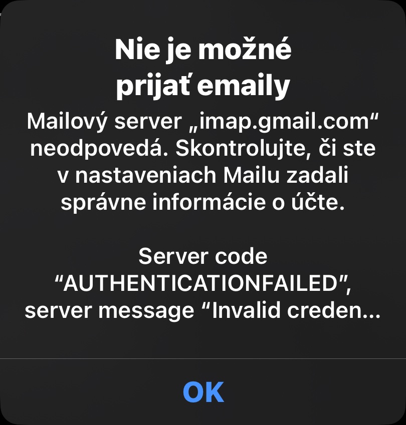 Ahojte. Od dnes mi vypisuje tuto chybu v maile na iPhone. Nemáte to aj vy, že by to bola celoplošná chyba ? Doteraz všetko fungovalo normálne.