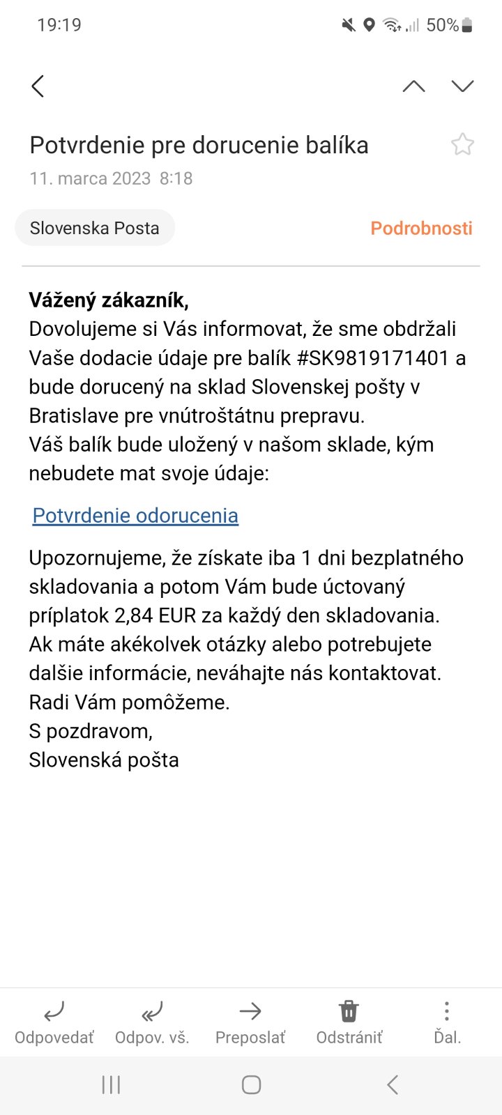 @monika07142019 dobry den kartou som platila aj ja presne to bolo 19.12. Okrem toho ze mi od pondelku chodia anglicke sms ze mam zaplit prepravu lebo poplatky sa zvisily ci co kolo toho ,mi nic ine neprislo ,vuem ze ani nepride lebo ta stranka je na ciernej listine