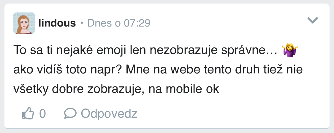 To sa ti nejaké emoji len nezobrazuje správne… 🤷♀️ ako vidíš toto napr? Mne na webe tento druh tiež nie všetky dobre zobrazuje, na mobile ok