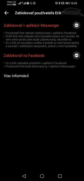 Zablokovanie osoby v messengeri