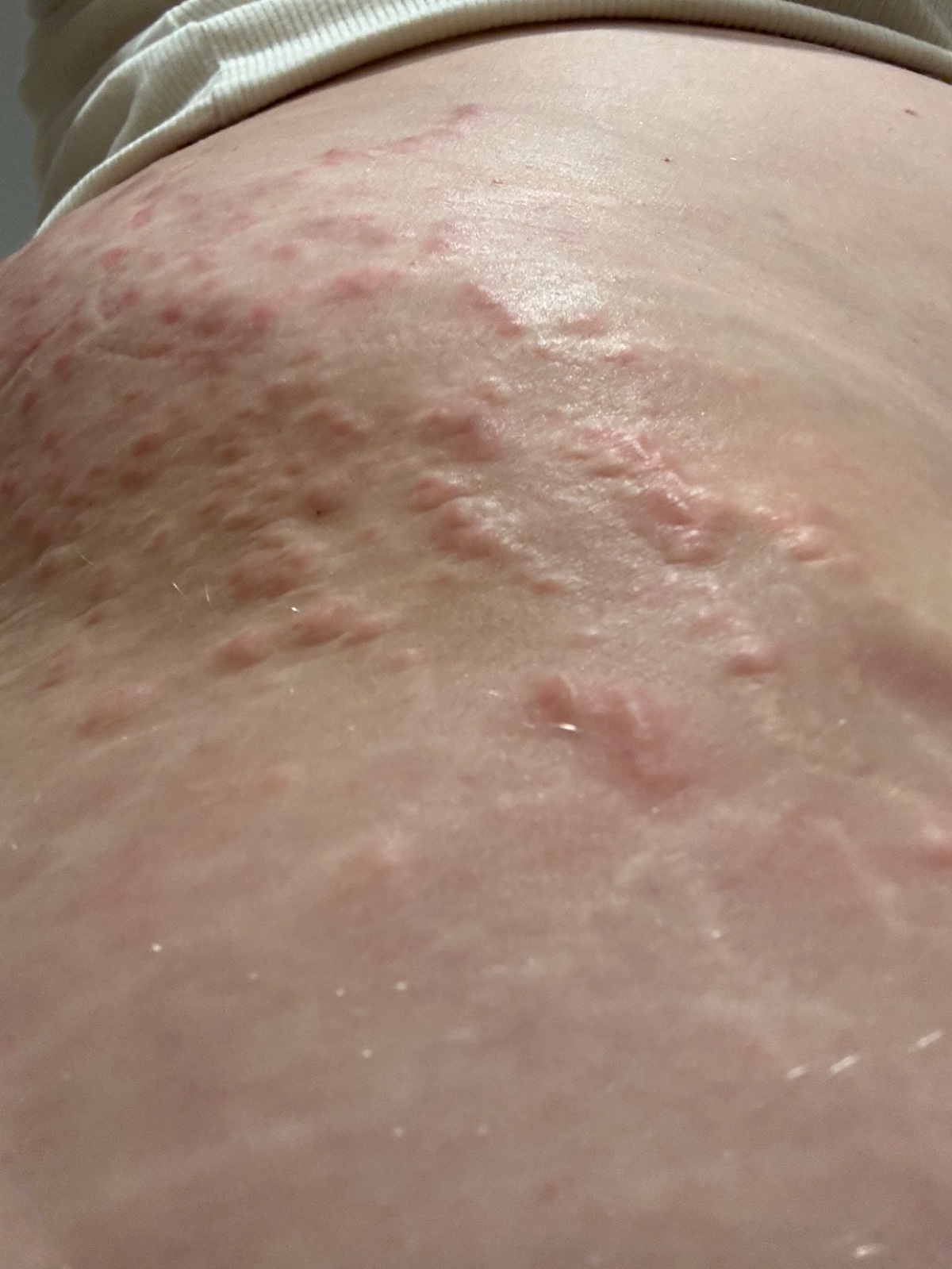 V pondelok idem na kožné, obvodná mi brala krv, ale odpísala ma, že mám výsledky v poriadku a prejde to… no nemyslím. Dnes to mám značne intenzívnejšie. Vyrážky vystupujú do priestoru, sú priesvitné a časom scervenaju. Svrbí to šialene.