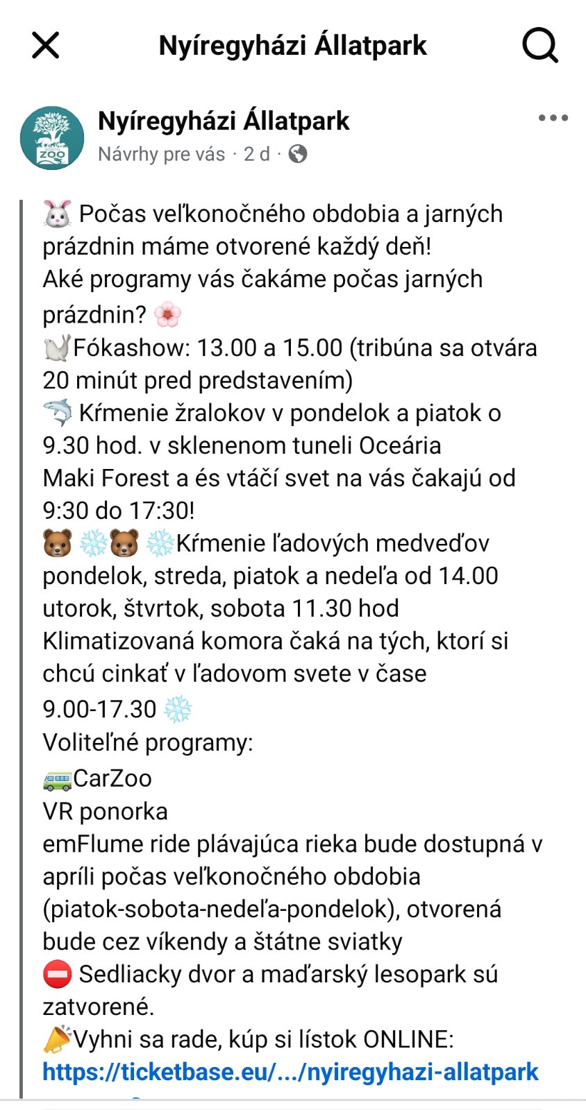 Píšu na FB že aj cez sviatky majú otvorené. Košice ZOO už zo zúfalstva dalo výzvy na ludialudom, lebo melú z posledného kvôli zatvoreniu 😔