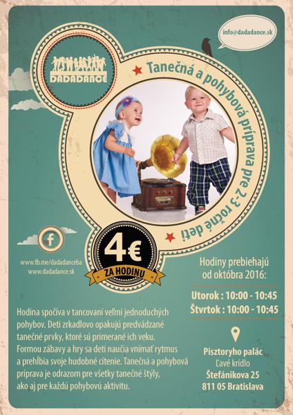 Ahojte mamicky, vonku je zima a prsi,.....pridte na Tanecnu a pohybovu pripravu pre 2-3 rocne deti do DadaDance. Viac na www.dadadance.sk