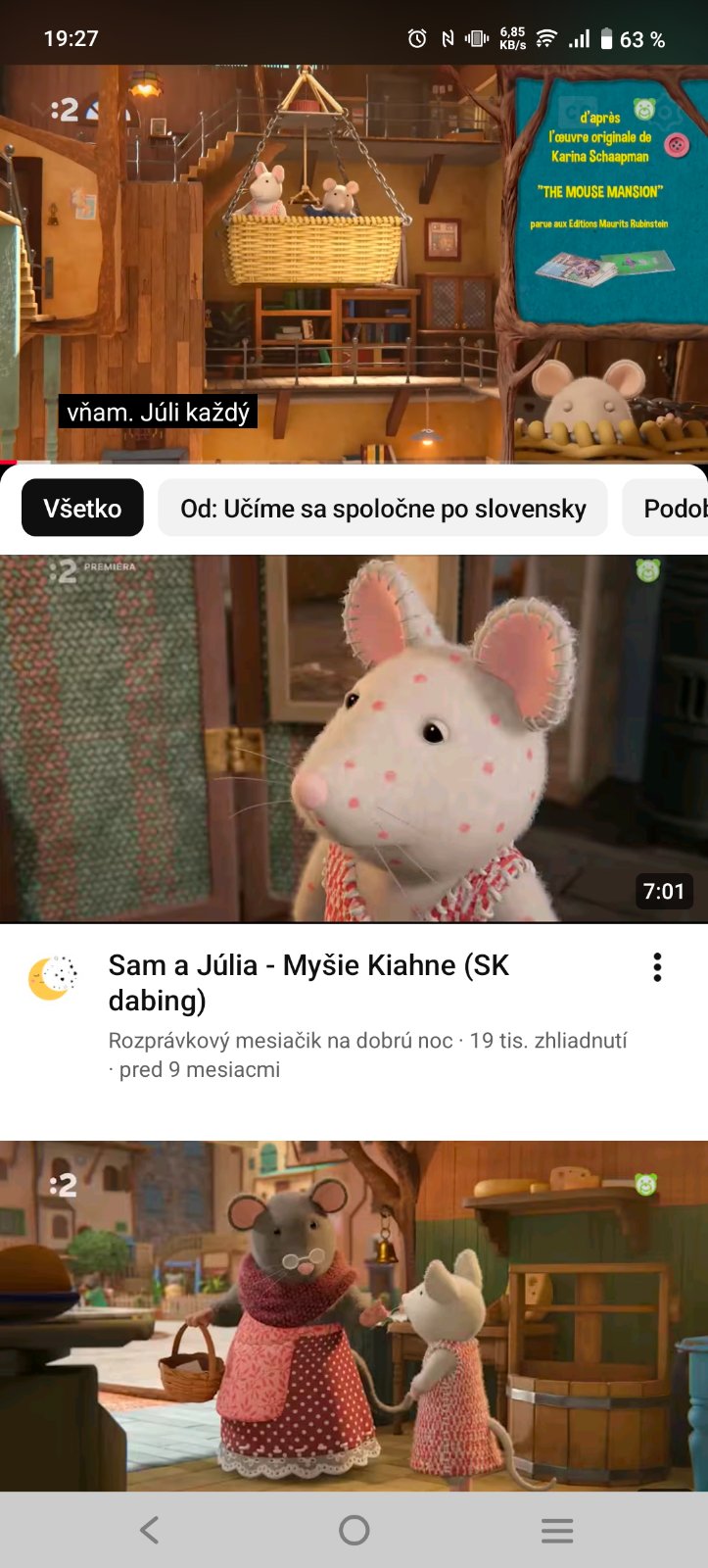 Rozprávky líšky a vlka, zvedavy George, Hádaj, ako veľmi ta mám rad, Čo rozprávala teta srna, Požiarnik Sam, Macko Uško, Connie, Medvedík Paddington, Spievankovo - Anglicanina - všetko na YouTube
