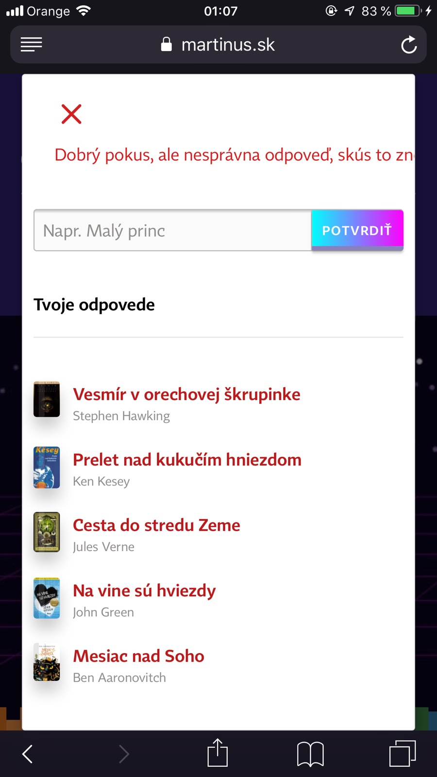 ahojte, na Martinusackom webe prave zacala knizna odysea, co keby sme tu zdielali odpovede na otazky? 😊