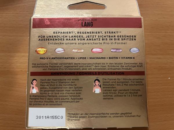 Ahoj, preklad: po umytí vlasov šampónom Pantene Pro V si naneste Rescue Shot na ruku. Vmasírujte od končekov vlasov rovnomerne na celú plochu vlhkých vlasov. Nechajte pôsobiť 1 minútu a vymyte. Pre lepšie výsledky používajte 1 až 2x týždenne.