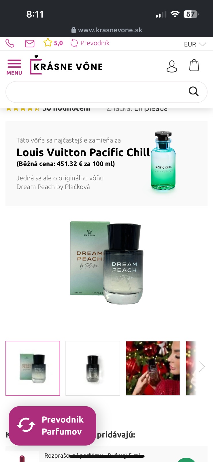 To je parfemova voda nie parfum (medzi tymi 2 je pomerne dost rozdiel v intenzite a vydrzi), je to fake na ten LV Pacific Chill tak vonia ako ten, neviem ako inak tu vonu popisat.