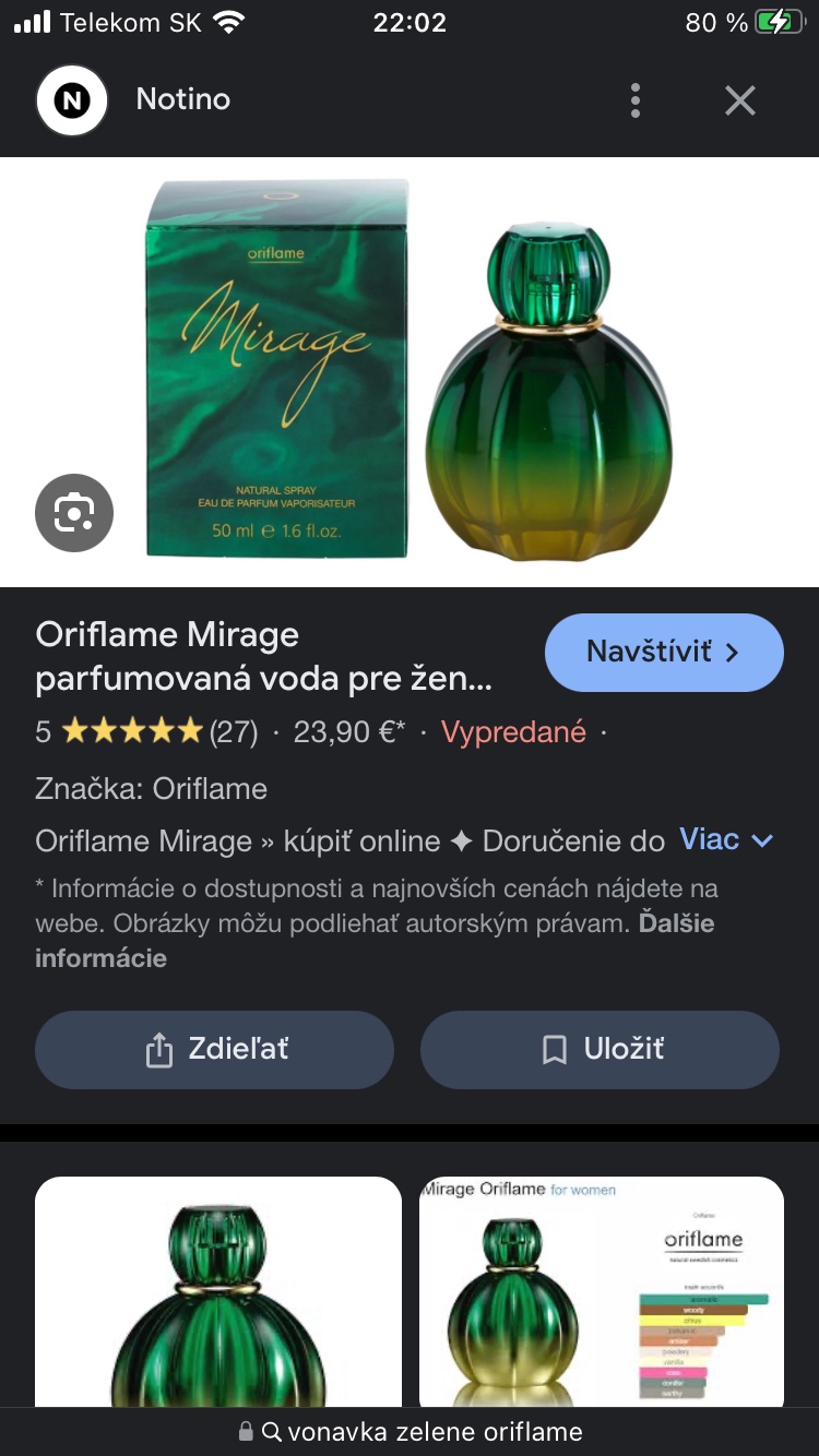 @katka700 no hocikde po nete kde na ne natrafím zo zahraničia.A vôní takto uskladnených mám aj ja plno v pivnici v chlade zabalených a to vydrží bez zmeny aj x rokov.No túto mirage som mala rada aj ja.Ale takú sumu čo pýtajú za ňu na tej stránke by som nedala ani ja.To je už prestrelené.Ale tak kto velmi chce,kúpi aj za takú cenu