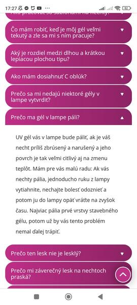 Ano je to bezne a riesenie je presne take ako je tu pridane na screenshote. Vybrat z lampy a potom vratit spat, uz palit nebudu. Mna napr teraz fakt malinko zapalia na 2-3 sekundy a potom nic, ale prve razy, este pred rokmi, ked som mala gelove nechty prvykrat, slm zazila ak vacsie palenie a manikerka ma dopredu upozornila, ze ked to bude neprijemne, mam ich vytiahnut, poklepkat prstami a zasa vlozit.