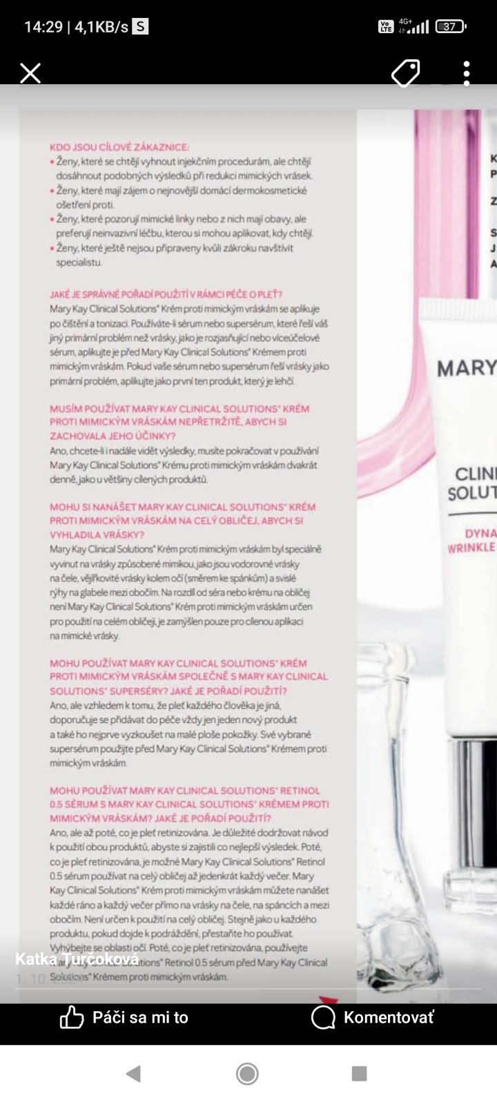 Ahojte. Mam 38 rokov a mam jemnučké vrásky v oblasti oči a úst. Nechcem zatiaľ nejaké kyseliny ani nič podobné myslím, že to ma ešte trošku čas a snažím sa prijať fakt , že pokožka starne. Aký krém by ste mi odporúčili. Nečakám vyhladenú pleť ale niečo na hydratáciu a pomalšie " starnutie pokožky ". Ďakujem ⚘️