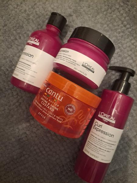L’Oréal Professionnel Curl Expression - používam šampón, zmyvatelny balzam, krém na umyté vlasy a nakoniec vmačkám Cantu gél. Vysusim difuzerom (trvá mi to tak do 5 min.), alebo bez fenu. Doma mám množstvo prípravkov na kucerave vlasy, no vzdy sa vrátim k mojej overenej rutine. Po všakovakých domácich geloch a CG metódach som mala vlasy splasnute a mlandrave.