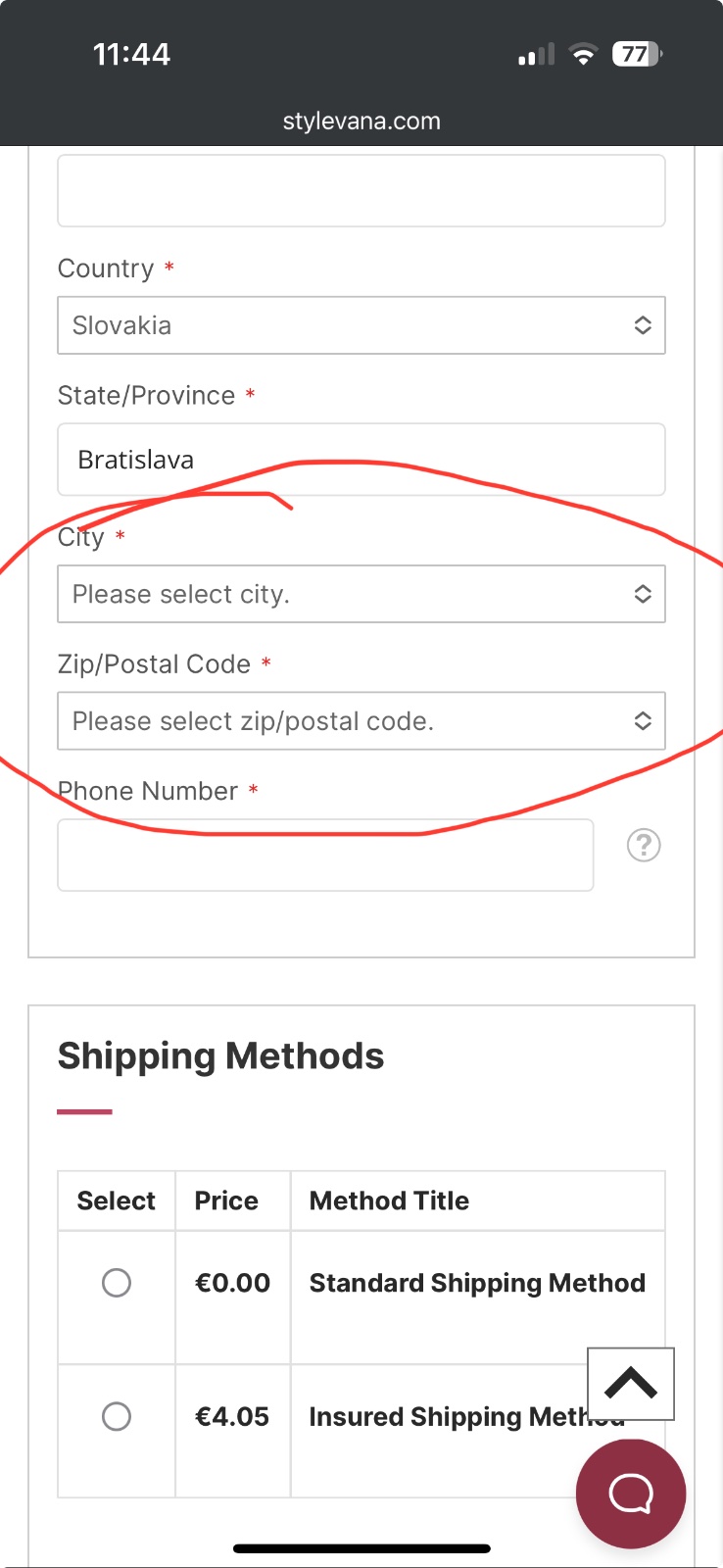 Dobrý deň, prosím nemá niekto skúsenosť s objednávaním so stylevany v poslednej dobe? Pri vyplňovaní údajov v objednávke mi vôbec nejde zajdať poštové smerové číslo ani mesto. Vôbec sa tam nedá nič vpísať ani nič vybrať. Nemáte s tým niekto skúsenosť? Už som v minulosti odtiaľ objednávala ale toto sa mi ešte nestalo. Objednávku som skúšala zadať cez mobil aj PC ale kolónky City a ZIP code sa nedajú vyplniť a bohužiaľ ma zo nepustí ďalej. Ďakujem pekne.