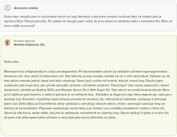 Nanolash sérum som si kúpila tiež. Mala som po aplikácii na viečku červenú čiaru a pálili ma oči. Nesedelo mi. Kúpila som si oveľa lacnejšie zn. VIPERA. Riasy narástli krásne dlhé a oči sú bez dráždenia. Treba skúšať, každému vyhovuje dačo iné.