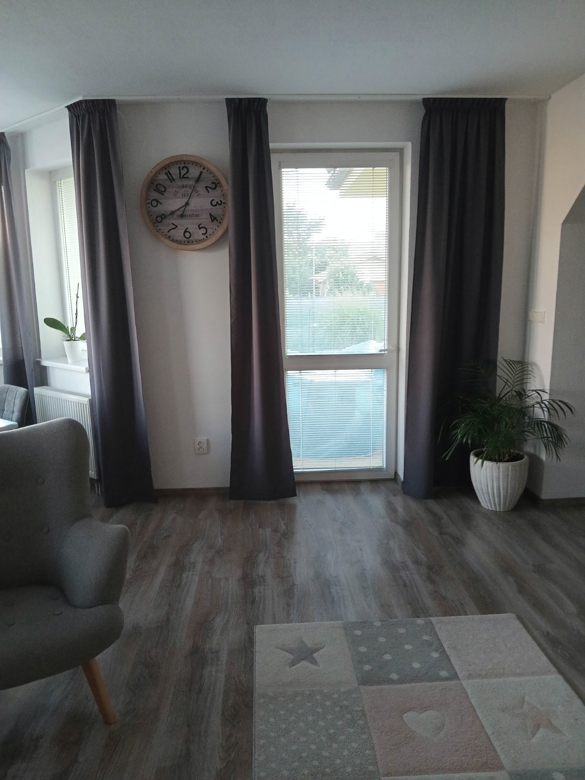 Hodiny by som dala preč a dať dva závesy a asi máš malú šírku závesu