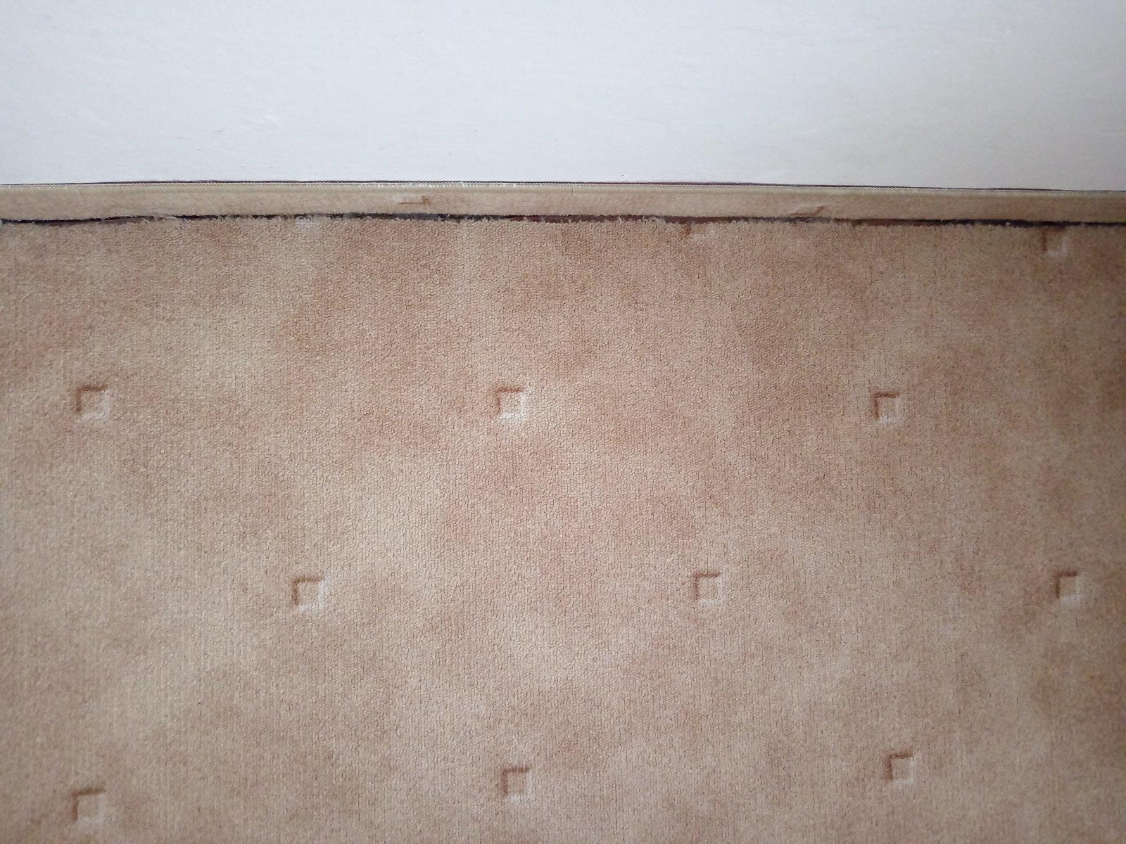 Mozno pre zatial vlepit uzky pasik z rovnakej farby z ineho metrazoveho koberca. Kupit ho polmetra sirky (menej asi nepredaju) a nazerat si pasiky. Alebo dat si narezat.