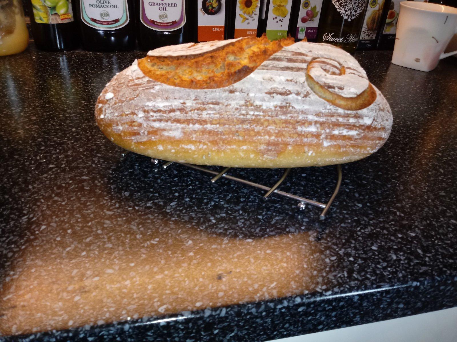 @tinusiatko krásne narezany, akurát som ho dnes robila, ale v špaldovej verzii. Skúšala som ho raz robiť ako väčšinu chlebov, teda rozkvas, potom všetky suroviny na cesto zmiešať s rozkvasom, dve hodky kusnut a 3x prekladať, potom 1,5hodky v osatke.....aaaaaa...nebolo to ono....pri tomto chlebíku mám odskusane, že sa treba držať receptu...inak je fantastický😉