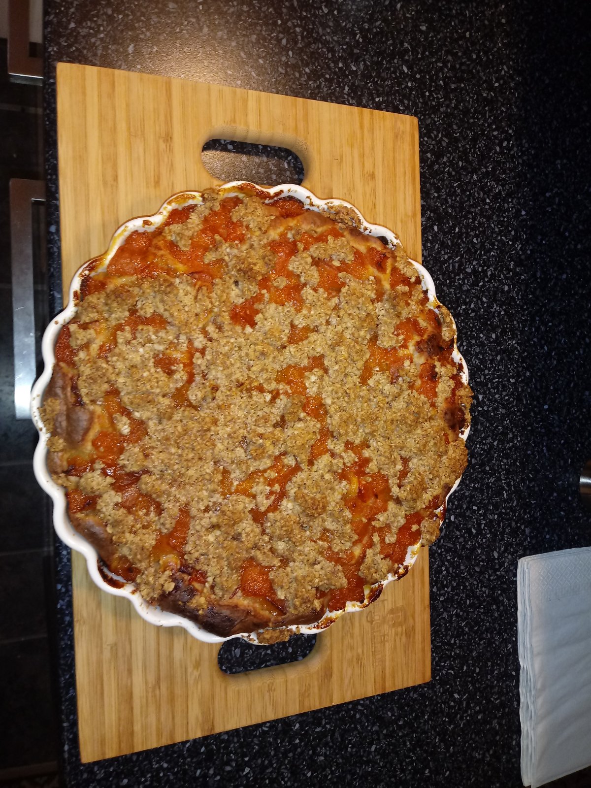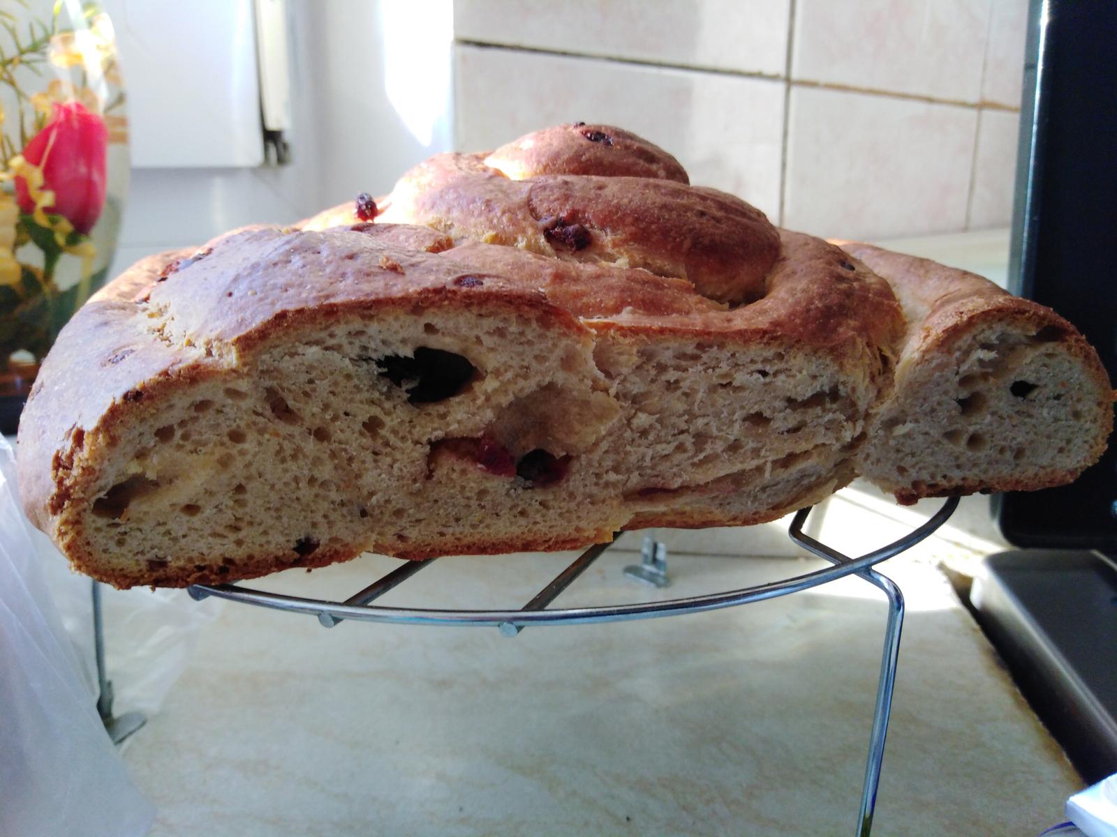 Baby, tak som vyskúšala ten kváskový ovocný koláč. Do cesta som dala o 50g menej cz špaldy a namiesto nej dala manitobu. Cesto bolo jemnučké, nadychane. Nedala som na klasický plech, ale fo keramických foriem, deti sa nevedeli dohodnúť, či čerešne alebo marhule, tak máme obidva. Keďže ovocie bolo jedno z mraziaku, druhé zavárané, bolo mokrejsie a oba koláče sa piekli skoro hodinu. Nie sú zlé, ale dosť vyrazne tam cítiť ten kokos. Nabuduce miesto neho dám kvalitný olivový olej. Na čerešňový išla ako posypka len plátky mandlí. Na druhý som urobila posypku z ovsených vlociek, trstinoveho cukru a masla.