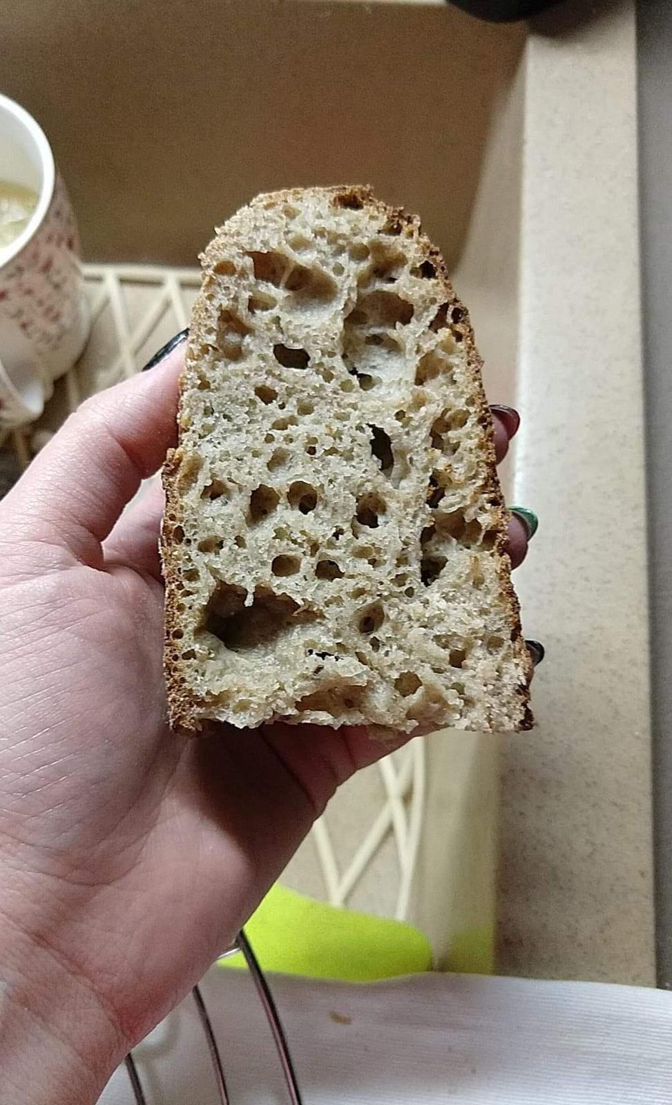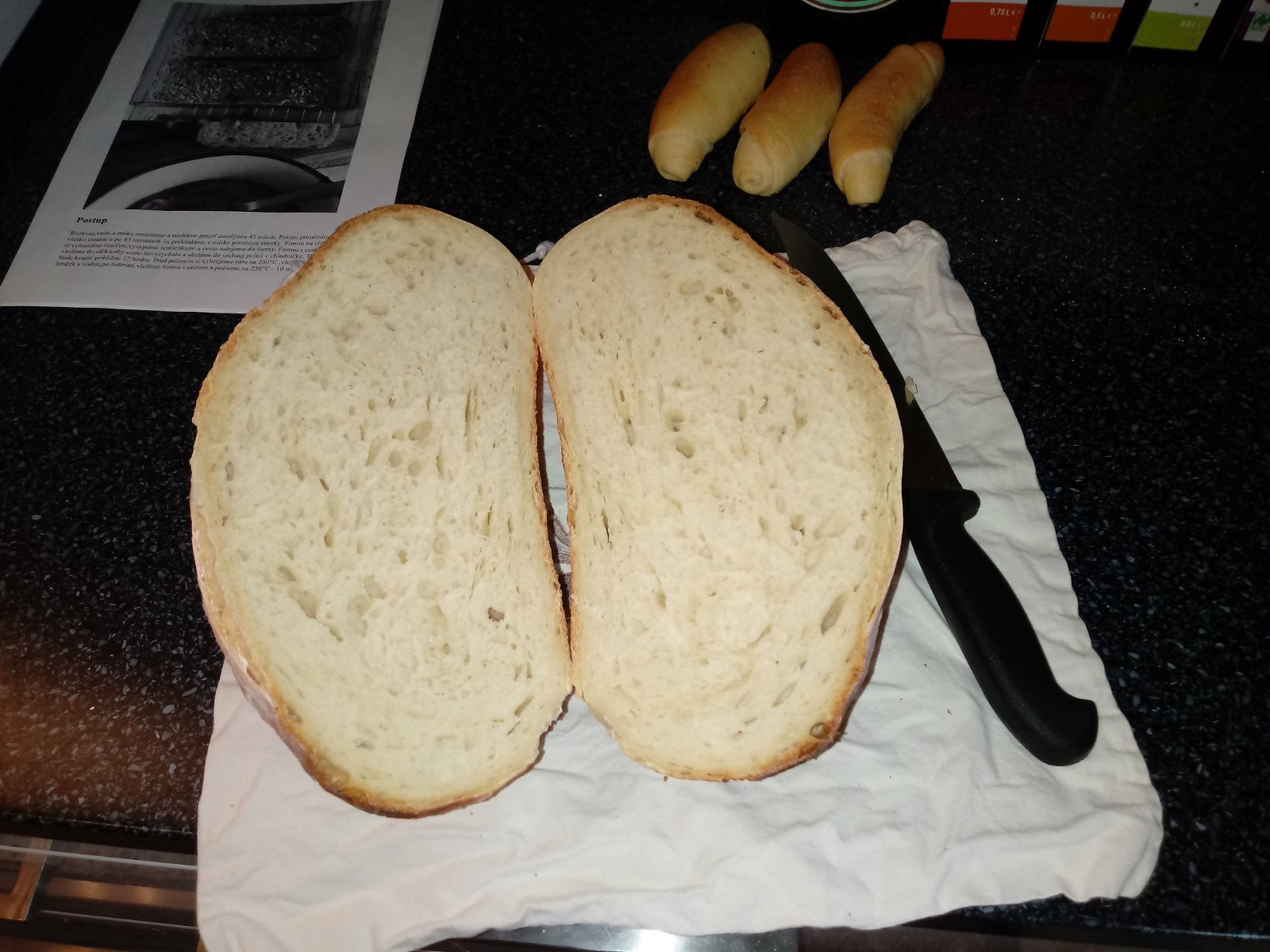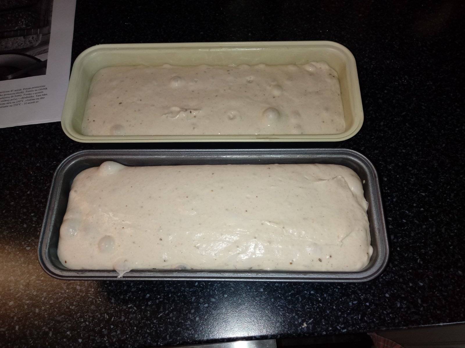 Tak, baby, včera som piekla tie základné špaldové chlebíky z k2. Chlebíky preto, lebo jeden bol pre nás a jeden na objednávku. Pre nás som robila prvýkrát z dvojnásobnej dávky, na objednávku išla normálne jedna dávka ako v recepte. Skúsila som mixer, ale rýchlo som doskúšala, ten môj to nedal. Tak som to potom akosi uhnietla v rukách (ta dvojnásobná dávka bola celkom zaberak😁). Čas, kedy sa preklada, som si kvôli chladu predĺžila z dvoch hodín na tri a v osatke boli oba tri hodiny. Či to bolo tým predĺženým časom, neviem, ale vyšli takéto nádhery. Chuťovo úplne jemnučké, ako vatička, len tie gigantické rozmery😁😁 nám vyhovujú skôr malé chlebíky a častejšie piecť. Prikladám rez toho väčšieho. A keď už mi včera švihalo s pečením, prečo nedať ešte dve semienkove tehličky od Helenky Balážovej, samozrejme špaldové. Plus martinské rožky od Naty, špaldové. Sú výborné, len treba skrátiť čas pečenia.