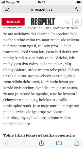@elizabet173 Ak je toto už mimo tému, ospravedlňujem sa…Zial deje sa to stále. Aj mna tak doktorka a jej sestricka poucali (ako aj o stravovani). Akoby zatvárali oči pred tým, že to už dávno neplatí. Pre mna je to jednoducho tyranie dieťaťa a mali by konečne zakázať takto matky informovať. A slova lekára zaoberajúceho sa traumami to len potvrdzujú. Maličké ma svoje potreby a nenechám ho hladovať, pre moje väčšie pohodlie, veď ono si tuto potrebu nevymyslelo.