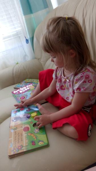Staršia dcérka miluje čítanie od bábätka doslova (ona ledva sedela, a ožúvala tie plastové knižky do vody), teraz je prváčka, a stále má rada, keď jej čítame my.