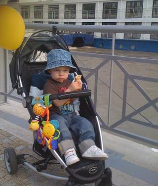 teraz spinka...zaspal az o 14,30...kupkal sa v bazeniku...najviac sa mu pacilo,ze moze behat bosy po travicke...