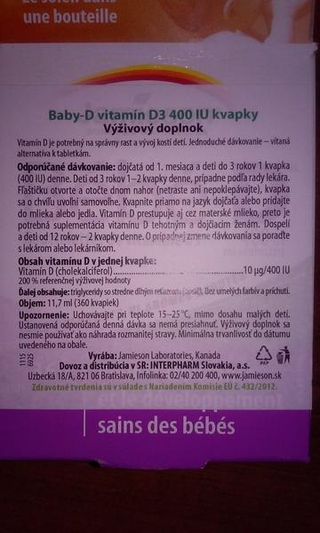 Baby...malinka.bude mat zanedlho rok mozem jej davat do mliecka uz 2 kvapky Jamieson Baby Bebe vit.D??