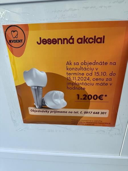 @vysost dobrý deň vyššie som Vám zaslala akú majú teraz akciu. Prídete tam urobia Vám RTG a pripravia cenovú ponuku. Všetko Vám vysvetlia, aby ste mali krasne zúbky.