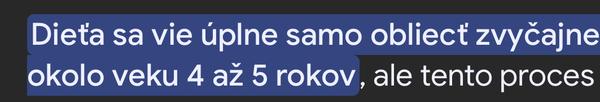 @anonym_autor ahoj, nečítala som komentáre,len sa vyjadrim k príspevku. O nič nejde, no to je toho, že sa neviem sám 100% obliecť. Dieťa je ešte maličké, má čas, neviem na čo a pre koho je toto dobré robiť búrku v pohári vody. Veď nie je v prvej triede. O pol roka už bude väčší, spraví znovu pokrok. Koľko detí má v 4 rokoch plienku a je to podľa pediatrov ešte v norme. Všetko má svoj postup a hlavne čas