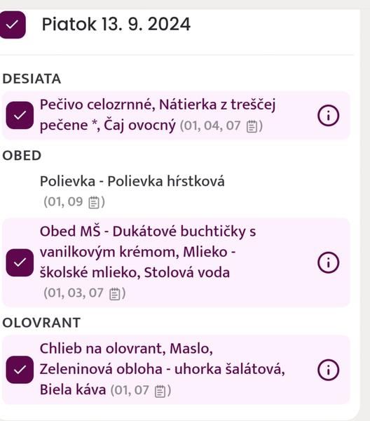No ked vidim tie jedalnicky tak som vdacna za nasu skolkaraku stravu. na desiatu - len ovocie a zelenina od 9 do 11 kedykolvek si mozu brat kolko chcu. Ranajkovat musia doma alebo si mozu priniest ale nemoze to byt sladke. Olovrant obvykle 2 x za tyzden chlieb rozne druhy a 2 x rohlik z nejakej domacej pekarne s natierkou alebo maslom a vzdy zelenina k tomu a 1 x nejake sladke ale zdravsia verzia. Pitny rezim cely den voda, domace limonady bez cukru a caj bez cukru alebo si robia aj freshe raz za cas.