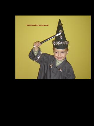 ja pridam foto nasho Mateja vlani bol za carodejnika, na vyrobu to bolo velmi lahke, ciapka z vykresu olepena krepovym papierom, strieborne hviezdicky a lamely z vianocneho stromceka 😉 a plast z muzovej starej tmavej kosele, ktoru som zuzila na synovu velkost. Kuzelnicku palicku mal z papiera. A tohtorocny karneval bol pirat, no v zalohe sme mali aj home-made masku lekara, tak mozno niekho tiez inspiruje.