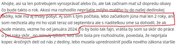 Pozor. Ak v máji 2024 bude mať 3 roky, budeš musieť nastúpiť, inak výpoveď 😕. Ale to máš ešte rok, snáď od januára by mohla vyjsť súkromná škôlka.