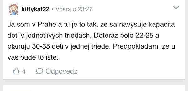@kittykat22 Tiez tu zijem, mam deti v skole a v skolkach a je to blbost. V skolkach sa zatial ziadna vynimka nechysta, ziadnych 30+ deti na ucitelku nebude, ostava zatial zakonna forma, Vynimka sa chysta len pre skoly. Takto vznikaju famy a bludy.