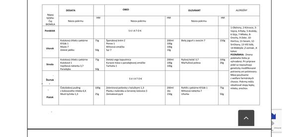 Napriklad na tento tyzden maju takyto jedalnicek.