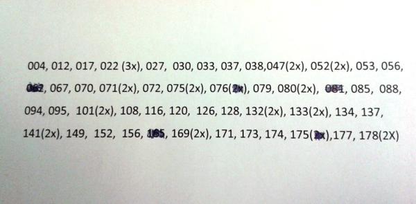 Na vymenu mam tieto: 1, 2, 5, 6, 7, 9, 10, 11, 13, 15, 16, 20, 21, 22, 24, 25, 26, 31, 34, 36, 37, 38, 40, 42, 43, 45, 48, 49, 50, 53, 54, 55, 56, 57, 58, 61, 62, 63, 64, 65, 67, 68, 69, 70, 71, 72, 74, 75, 76, 79, 80, 81, 82, 86, 87, 90, 91, 94, 97, 101, 102, 103, 104, 107, 109, 110, 113, 114, 115, 118, 119, 120, 122, 123, 124, 128, 130, 132, 133, 135, 137, 138, 139, 141, 143, 145, 147, 148, 149, 153, 155, 156, 157, 158, 159, 160, 161, 162, 163, 164, 165, 166, 167, 168, 169, 171, 173, 174, 175, 178, 179.