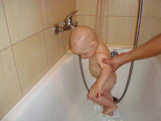 opatrne osprchujem pravú, potom ľavú nôžku...len ma, ocko, pridrž trošku 🙂