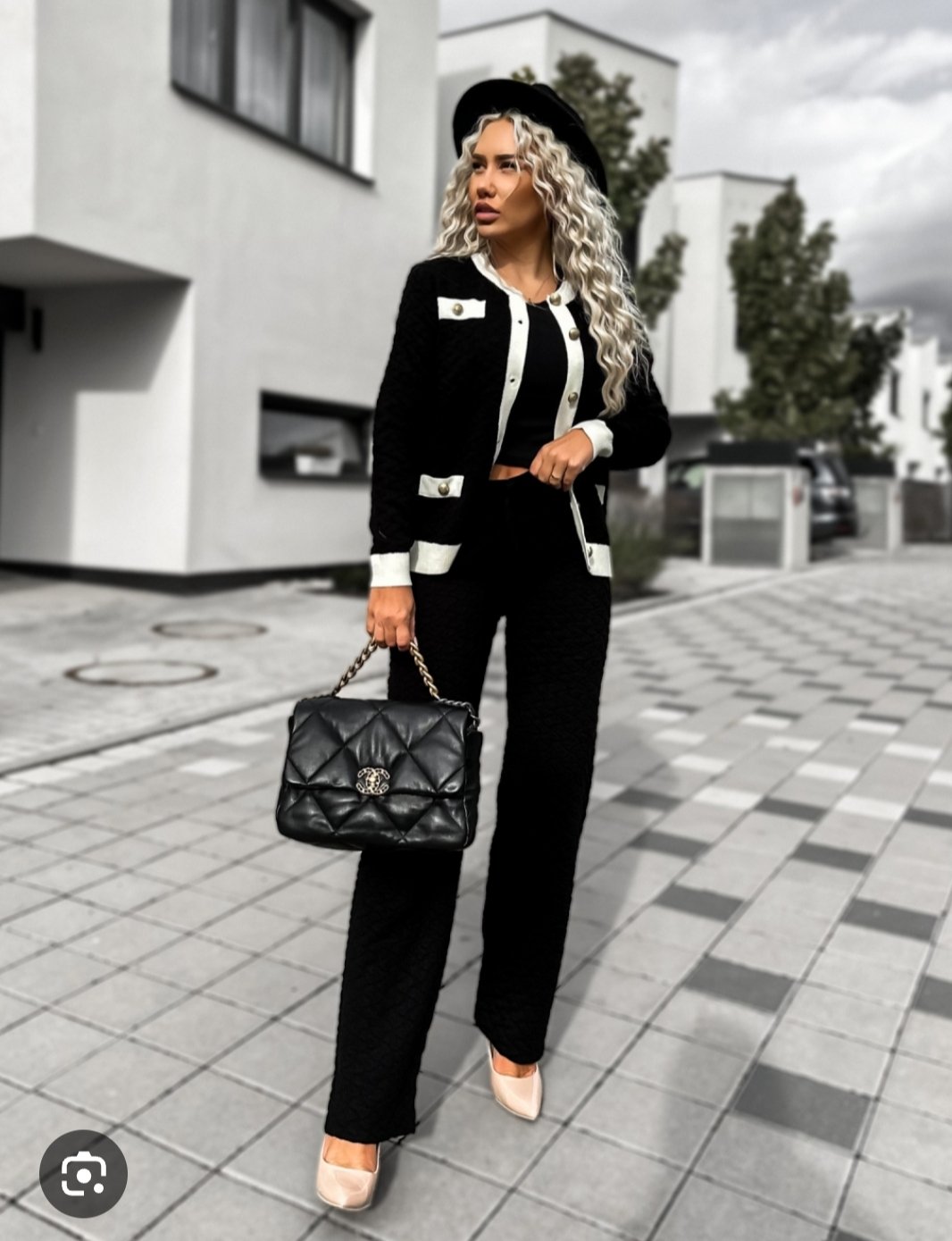 Ale za mňa teda čierny kostým, do toho biela blúzka/top, telové silóny, čierne lodičky, čierna kabelka.