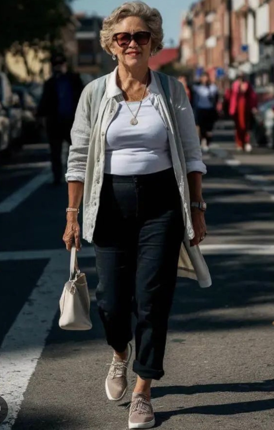 @anonym_06c3de moja 77 ročná mama áno. Úzke rifle, tričko a sako napr. do obchodu alebo rifle a mikinu na prechádzky v prírode. To posledné by si dala iba na šport a do prírody, do mesta nikdy, je to funkčné oblečenie.