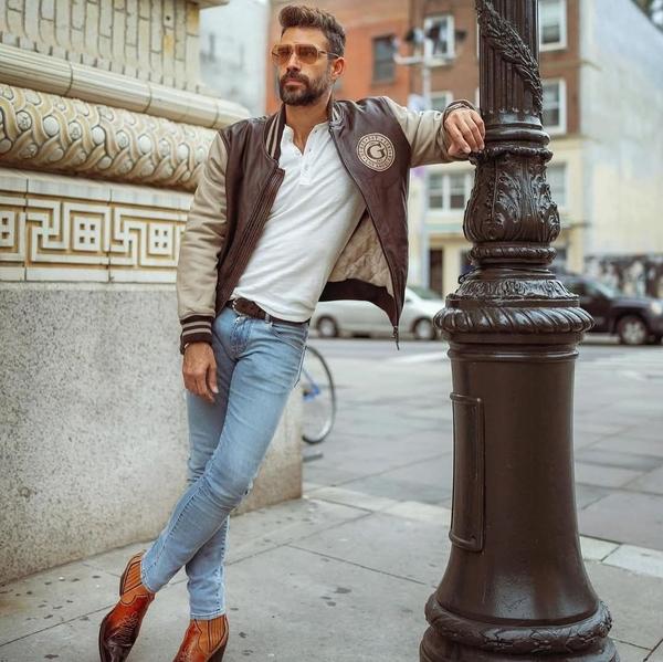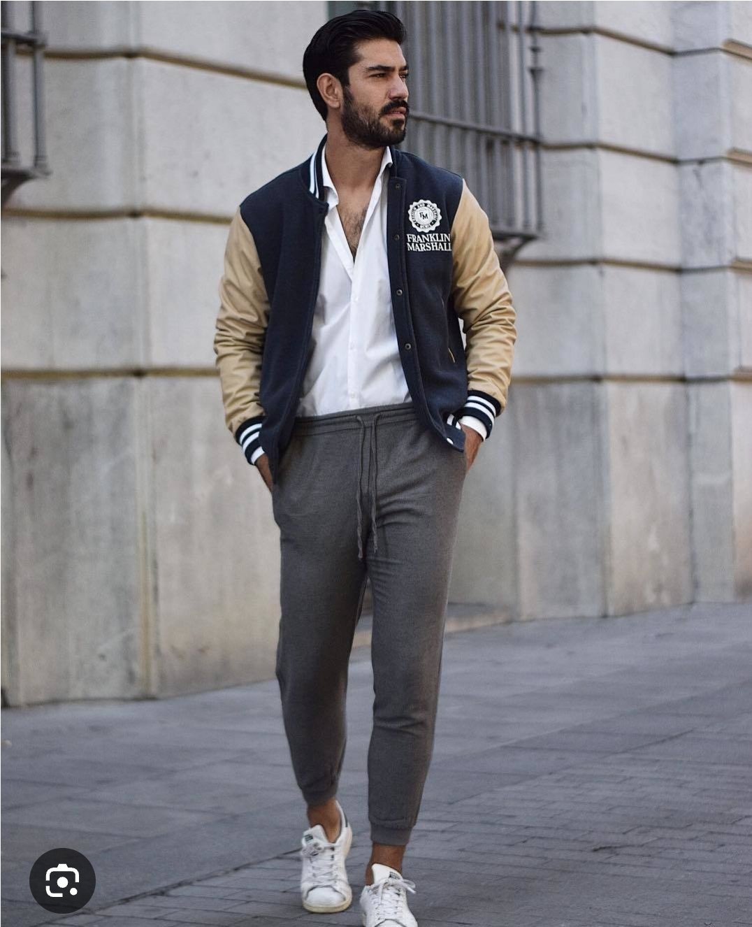 Kombinácia košele s baseballovou mikinou na jeseň