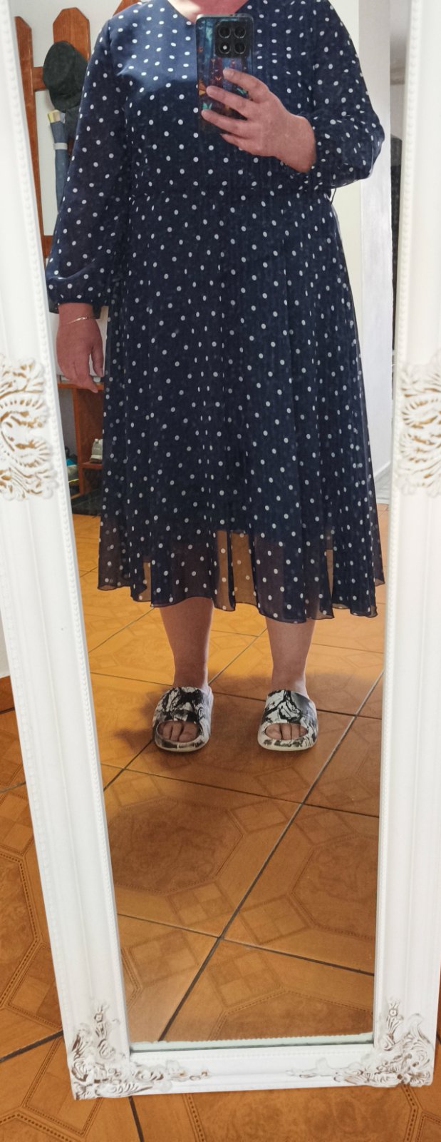 @zuzana1415 takto, ak chces tieto saty lebo ich mas kupene tak ok. Prve co by som dala kratsie rukavy, vyhrnula ich vyssie. Daj si k nim nejake lodicky na nizsom opatku ake doma mas, kludne cierne (tie slapky to uplne zabijaju na tej fotke). Skusila by som nejake sako, tmavomodre alebo aj biele. A tam kde je pas dat tenky opasok biely alebo tmavomodry aby jasne ukazal kde je pas. Vystrih tiez nie je dobre zvoleny, kupuj vzdy do V, to ta zostihli. Ale uz ked je lodickovy tak by som dala sperk, na tenkej retiazke (nech nepridava hore na objeme) nejaky jednoduchy ale vyrazny, dlhsi na prsia. Bud nieco kovove, strieborne alebo aj typu kamen so striebornou obrubou. A potom hlavne dobre stahovacie pradlo a dobre padnucu podprsenku. A ked stojis tak nohy co najviac k sebe.😊