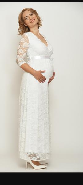 Mám 178cm a mám v bazáriku svadobné šaty Orsay, ktoré som si kúpila ako popolnočné (nakoniec som ich nepoužila) a boli teda dlhé až až. Dokúpila som si aj dosť pružné bolerko, aby som nemala odokryté ramená a ruky. Ja som však nemala veľké bruško ani pred pôrodom, takže neviem odhadnúť, či by boli veľkostne ok, ale môžem pomerať.