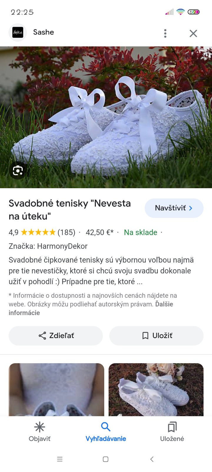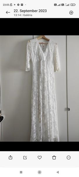 Vypada to ako nocna košela, určite tam ešte pridaj nejaké krásne štrasové doplnky nahrdelník náramok alebo nejake iné šaty aspoň s takým akoby opaskom čipkou? Toto je uplne jednoduche až pyžamoidné. Ale inak botasky som okrem obradu mala aj ja cely den /noc obute ...alebo biele balerinky si kup , a uces je pekny tiež 🤗