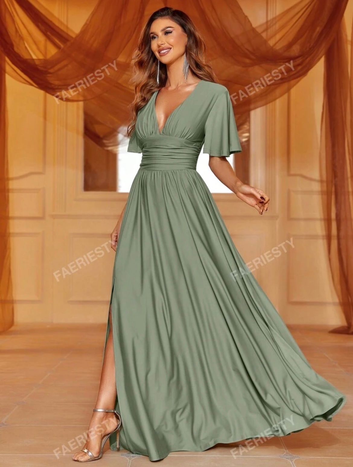 Krásne šaty nádherná farba ja by som si dala strieborné sandálky a veľké náušnice nejaké visiace keďže na krk si už nič nebudeš dávať a do ruky len peknú striebornu kabelku alebo potom telovej farby oboje a budeš krásna ešte dokonale lícenie k tomu a fešáka k sebe a svadba môže začať tak si to užite 🥰