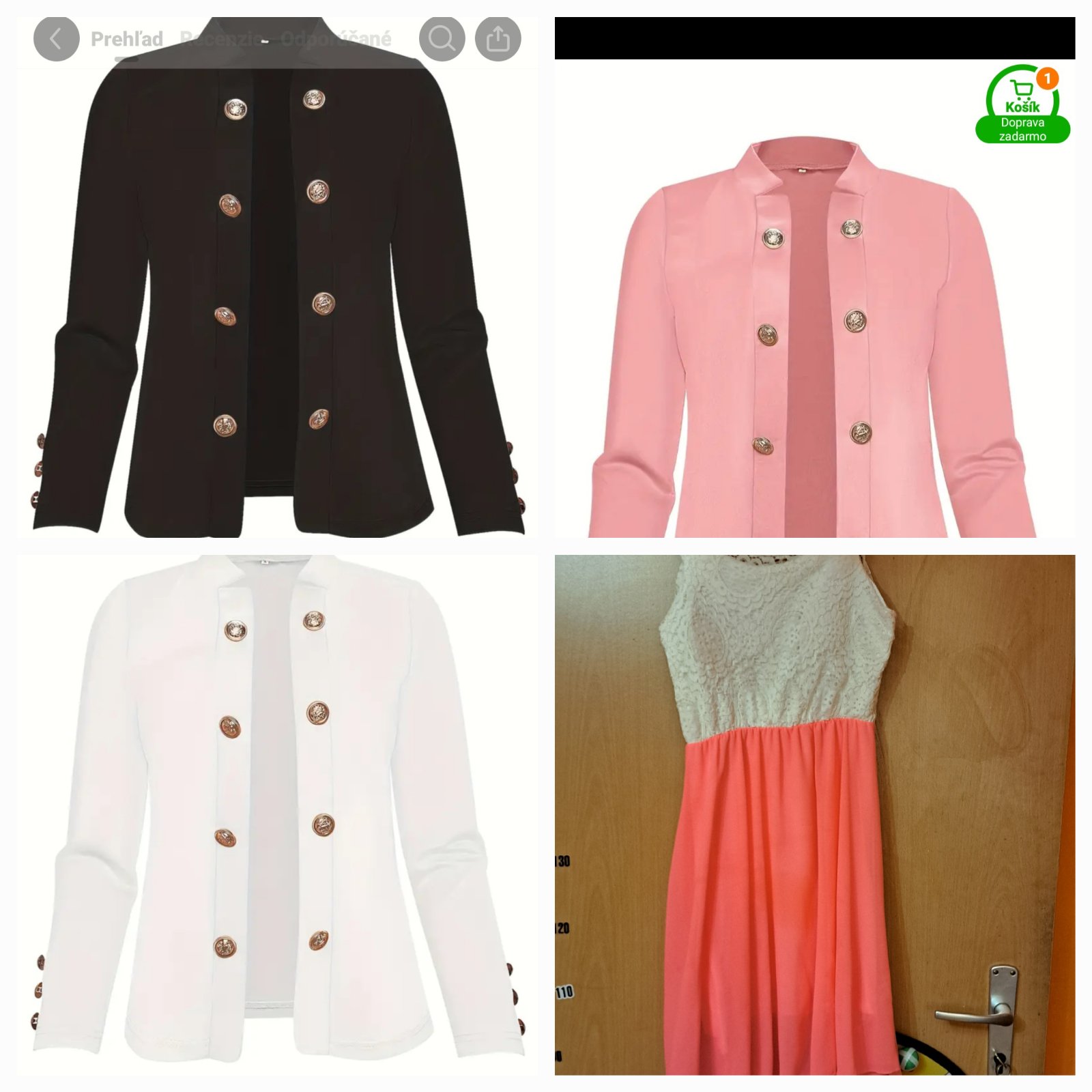 Šaty by ešte aj mohli byť, ale kabátiky s takými gombíkmi to nie je spoločenské oblečenie, radšej by som si obstarala nejaké sako biele.