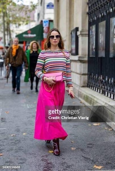 Ja inak vždy robím to, neviem, či poznáte appku Pinterest (je to akokeby prehliadač obrázkov) tak vždy si tam dám, čo potrebujem a už mi len vypluje outfity.. teraz som nahodila “long pink skirt alebo long fuchsia skirt” 🙂 tieto farebné kombinácie sa mi páčili (len s ohľadom na farby) samozrejme už je iné doladiť topánky, kabelku..
