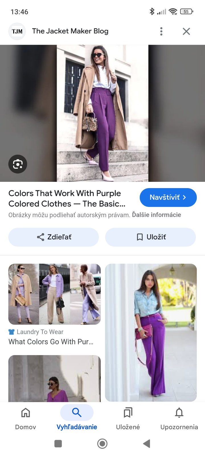 V pohode sa dajú nakombinovat aj športovo, biele tenisky, riflova bundička...alebo hodiť na to predĺžené sako, béžové, biele, čierne, alebo aj ton v tóne fialová, mokasiny, lodicky alebo aj členkov čižmičky.