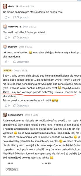 @dominika7990 nehnevaj sa, ale autorka píše, že má 90 kíl, tak tie šaty by na nej vyzerali všelijako, len nie dobre. Tento typ šiat je pre mladé kočky, tenké ako prútik.