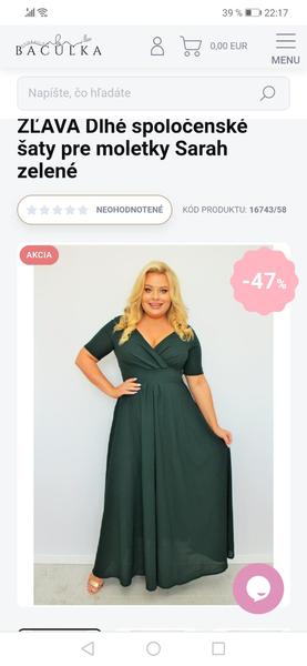 @janulka1802 píše že má po pôrode 75 kg a neviem z kade máš jej vek ale čo ak je mladá? 🙂 aj keď s vekom to nič nemá. Nikde neni písané že ženy v zrelom veku, alebo od akého veku sa musia obliekať nudne, nenapadne, klasicky či ako to nazvať. Takže kľudne aj moderne šaty a nie ako tie cierne šaty čo autorka pridala že to by si ani moja mama 50 r neobliekla. Na tých šatách má voľný strih sukne a zároveň je to tenucky materiál. Čiže by spravili postavu opticky krajšiu ako tie čierne kde má stehna obtiahnuté. To či by jej tie šaty sadli už musí autorka vedieť podľa svojich mier cez prsia 🙂 napríklad čo ja mám z Eriky šaty švagrina čo nosila veľkosť L ich úplne v pohode obliekla 🙂
