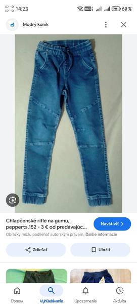 Tak mu kúp teplakovy strih riflí aj nohavíc. Môj nemá rád zapínanie zips a gombík. Nosí na gumu a aj dole na patent